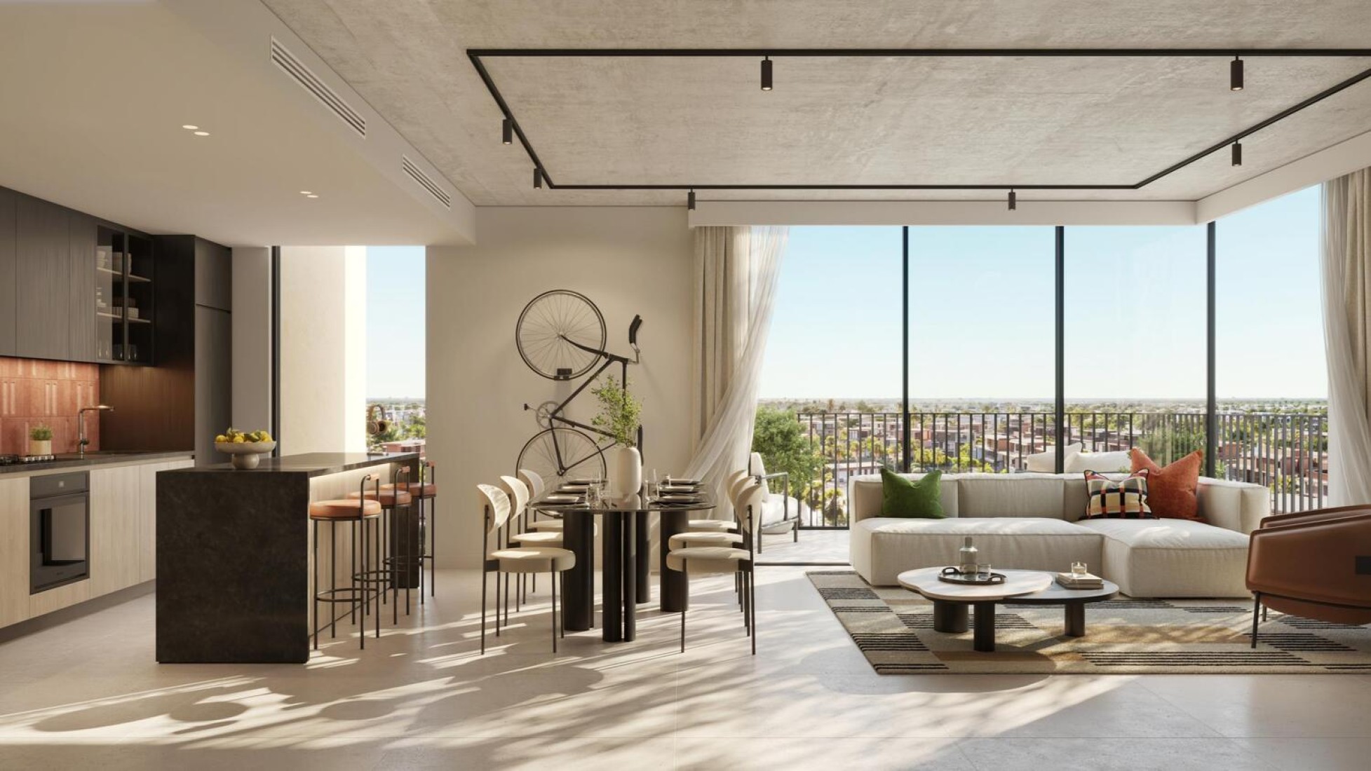 Rise by Athlon in Dubailand is a vibrant residential project designed for those who value both lifestyle and movement. Consisting of eight modern buildings, the architecture blends bold lines, natural timbers, and warm terracotta tones, creating an atmosphere that feels both dynamic and inviting. Each space is designed with flexibility in mind, offering residents a choice between light and dark interior palettes to match their pace of life.